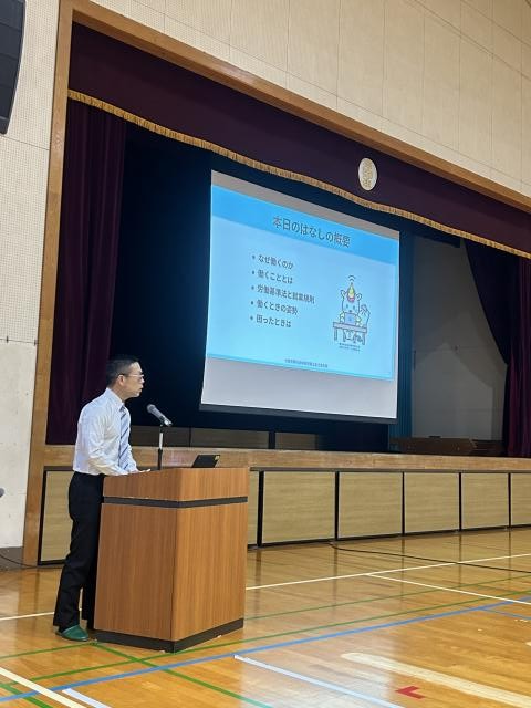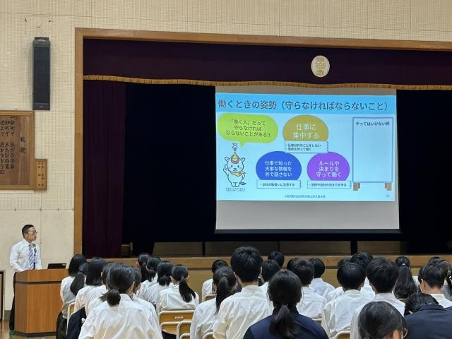 令和7年10月16日(木)に、江東区立第四砂町中学校の2学年の皆さんに職場体験前の「働くこと」についての出前授業を行ってまいりました。