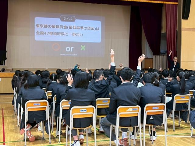 令和7年11月6日(木)に、江東区立大島中学校の2学年の皆さんに職場体験前の「働くこと」についての出前授業を行ってまいりました。